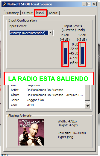 SI selecciona "WinAmp" transmitirá las canciones que reproduzcan con ese programa.